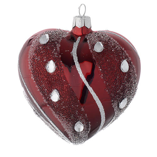 Bombka bożonarodzeniowa w kształcie serca szkło bordowe/ srebrne 100mm
