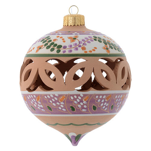 Bombka bożonarodzeniowa z otworami i szpiczastym zakończeniem – terakota Deruta 100 mm
