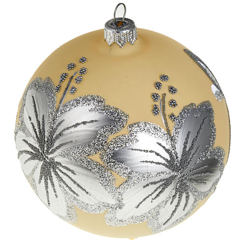 Dekoracja na choinkę: bombka szkło kość słoniowa posrebrzana 10 cm.
