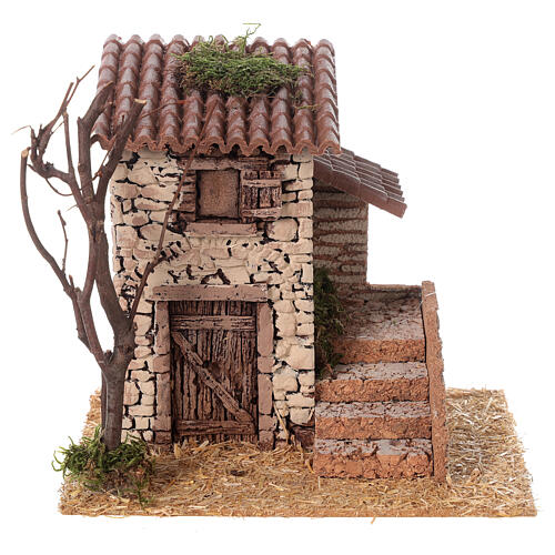 Domek z dziewiętnastowiecznymi schodami, do szopki 8cm, 20x20x15cm.