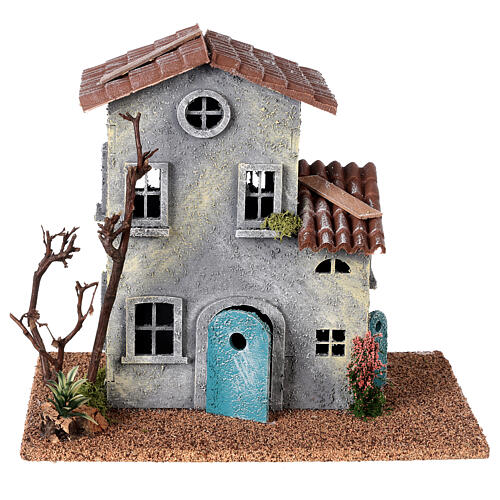 - Dworek w stylu 800 z drewnianym drzewem do szopki 6 cm