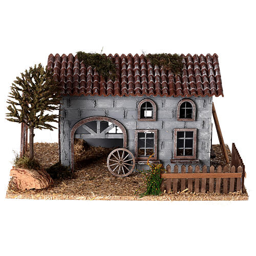 Stodoła z podwórkiem i drzewem do szopki, styl 800, 6 cm, 25x30x20 cm