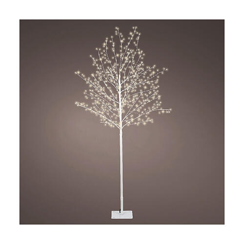 Stylizowane drzewko świetlne o wysokości 150 cm z giętkimi gałęziami, ozdobione 480 mikro diodami LED w ciepłej bieli.