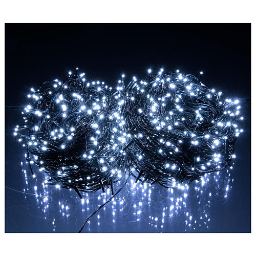 Świąteczne światełka z 1000 białymi diodami LED na zielonym przewodzie, do użytku wewnętrznego i zewnętrznego.
