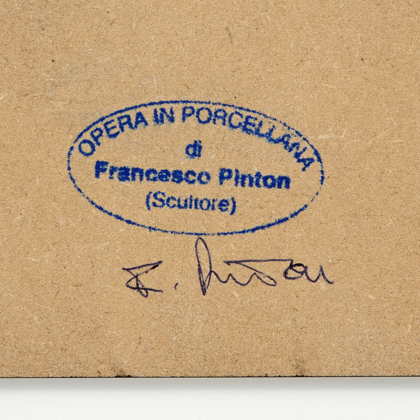 Jest umieszczona na podstawie z drewna polakierowanego na czarno i podpisanego przez Francesco Pinton na brzegu i podstawie.