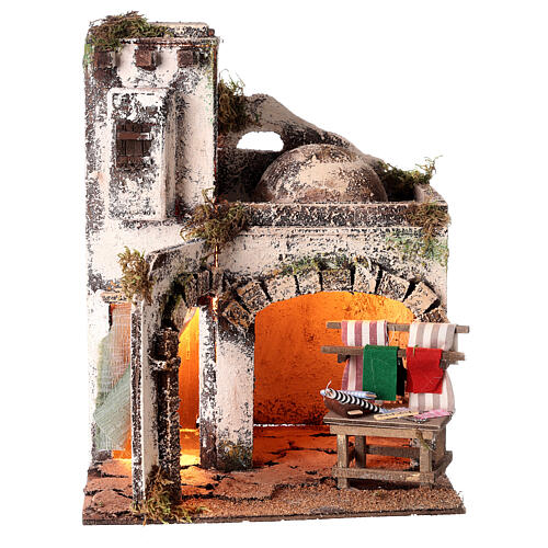Dom arabski z ladą i tkaninami - 30x25x25 cm do szopki neapolitańskiej 8-10 cm.