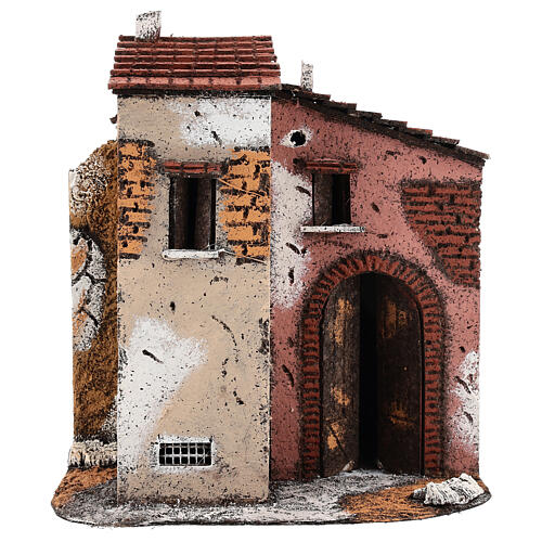 Domek do szopki neapolitańskiej z korka i drewna, 25×25×15cm, dla figurek 10–12 cm.