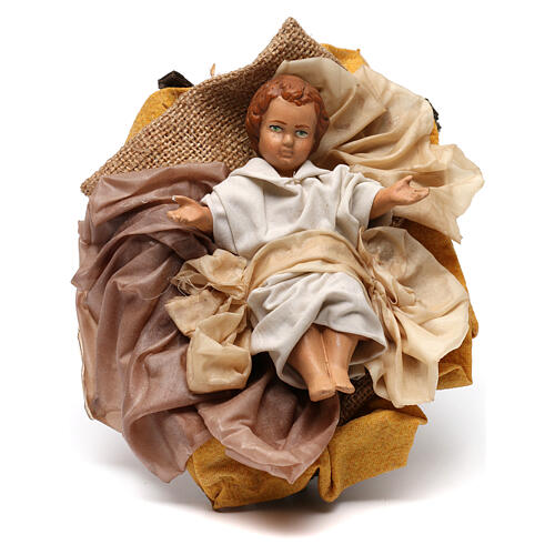 Dzieciątko Jezus w kołysce do szopki neapolitańskiej w stylu z lat 700, 30 cm