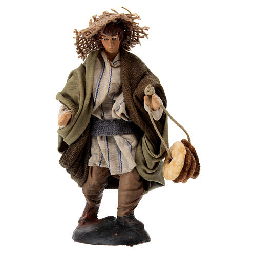 Figurka pasterz z obwarzankami, 12 cm, szopka neapolitańska, terakota, tkanina