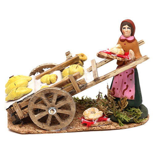 Kobieta z wózkiem pełnym chleba, szopka neapolitańska, 8cm