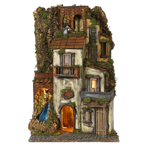 Pejzaż do szopki neapolitańskiej z wieżą i fontanną, figury 8–10 cm, 60 x 50 x 50 cm