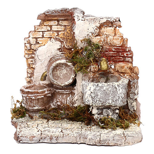 Podwójna działająca fontanna przy murze z cegły, 10x15x15cm, do szopek neapolitańskich 6-8 cm.