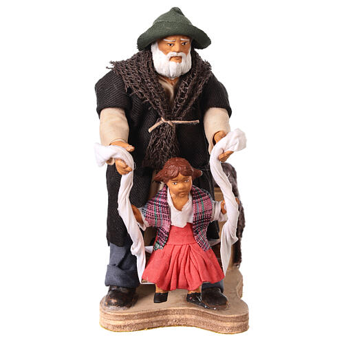 Ruchomy mężczyzna z dziewczynką, do szopki z Neapolu, 12 cm