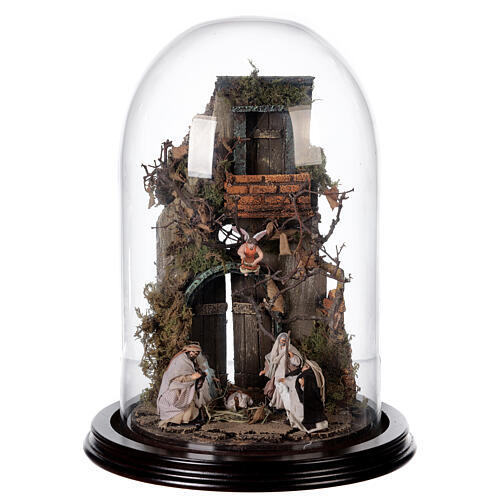Scena Bożonarodzeniowa z kopułą i podstawą drewnianą, 30x25 cm, szopka neapolitańska