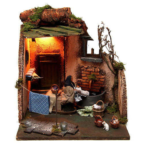 Scena praczka przy fontannie, szopka neapolitańska, 10 cm.