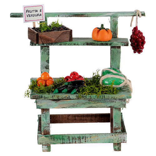 Stoisko do szopki neapolitańskiej 10 cm z owocami i warzywami, 10x10x5 cm