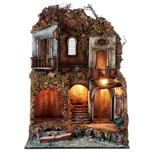 Szopka neapolitańska z motywem morskim, 75 × 40 × 50cm, figurki 12–14 cm