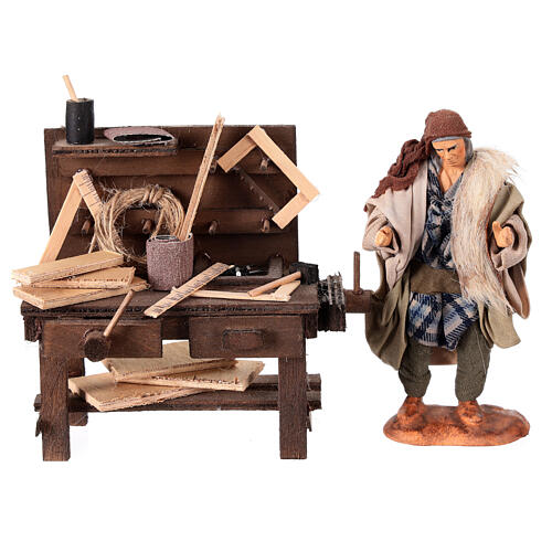 Warsztat i stolarz z terakoty, szopka neapolitańska 12 cm