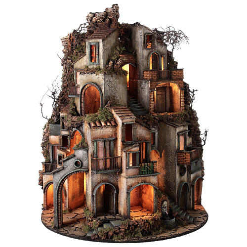 Otoczenie w neapolitańskim stylu składające się z różnych gospodarstw rozmieszczonych strategicznie w różnych punktach otoczenia, z podstawą w kształcie półkola i ścianami z korka.