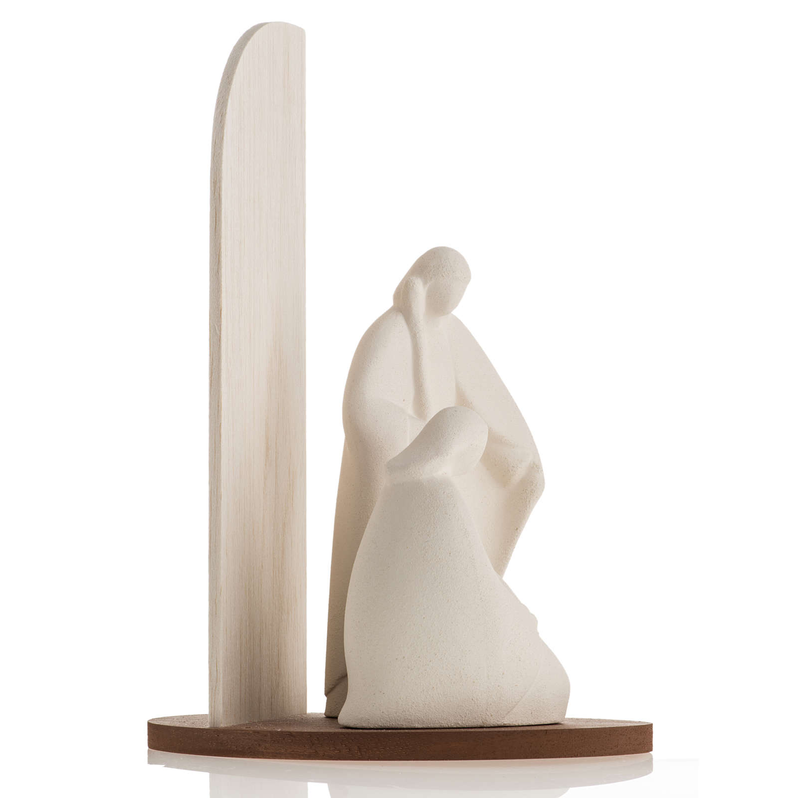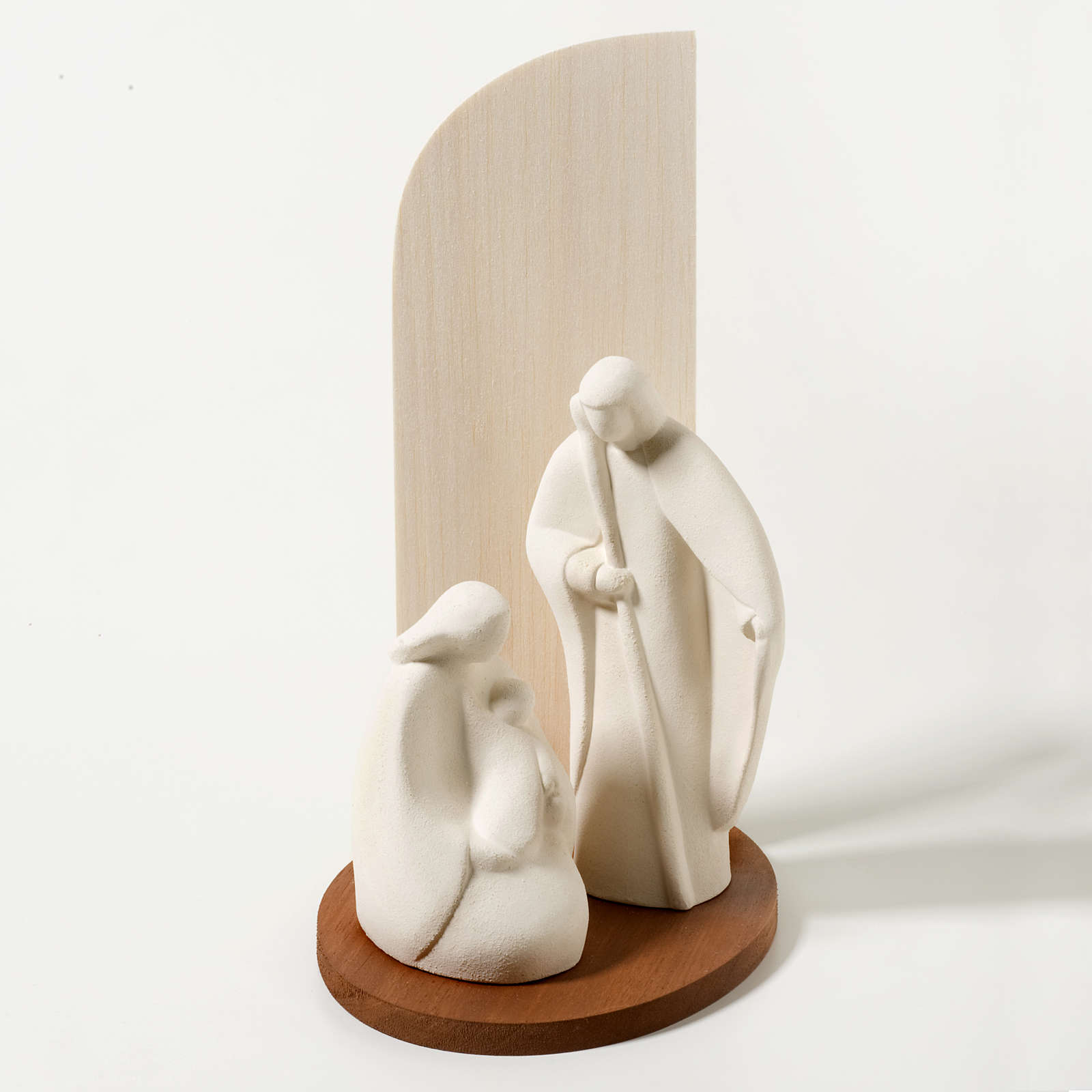 Ta stylizowana szopka została w całości zrealizowanych we Włoszech z białego szamotu. Początkowo surowej glinie została nadana forma, a następnie poddano ją wypalaniu w temperaturze ponad 1000°C. Wykończenie oraz obróbka zostały ręcznie wykonane celem nadania figurce linii prostych, miłych oku i wymownych.