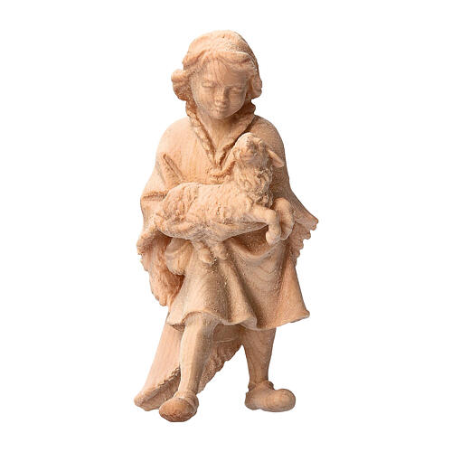 Dziecko z barankiem, figurka do szopki z drewna naturalnego, 10 cm
