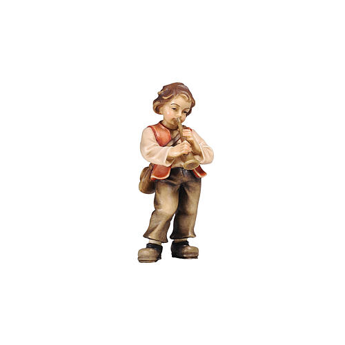 Dziecko z trąbką 12 cm, drewno malowane, Heimatland Val Gardena