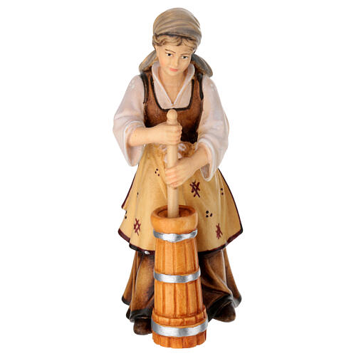 Kobieta z beczką masła, drewno malowane, 12 cm szopka Mahlknecht, Val Gardena