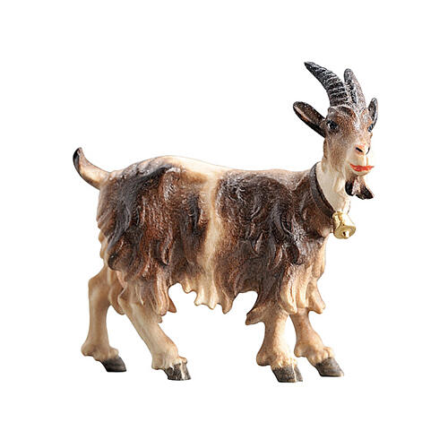 - Koza z dzwoneczkiem z głową skierowaną w prawo, malowane drewno, szopka Mahlknecht 12 cm, Val Gardena