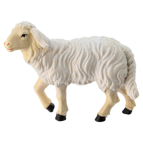 Owca z głową uniesioną w górę, malowana drewniana figurka, szopka Heimatland 12 cm, Val Gardena