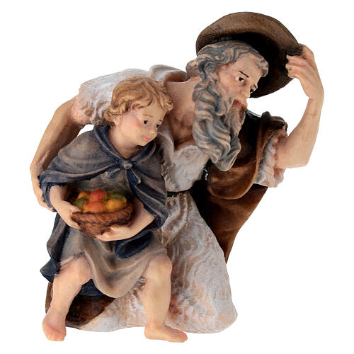 Pasterz klęczący z dzieckiem, 12 cm szopka Mahlknecht, Val Gardena