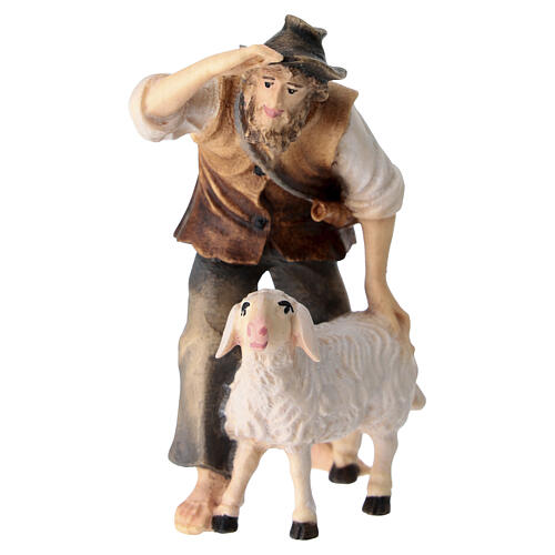 Pasterz z owcą figurka z drewna malowanego z Val Gardena. Figurka rzemieślniczo wyprodukowana przez specjalistów z Val Gardena, według tradycyjnych metod, które chronią jakość produktu.