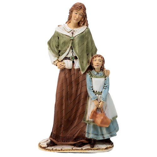 Figurka pastuszki z dziewczynką wyprodukowana we Włoszech z pvc nietłukącego i pomalowana ręcznie. Wzmocniona wewnątrz warstwą cementu.