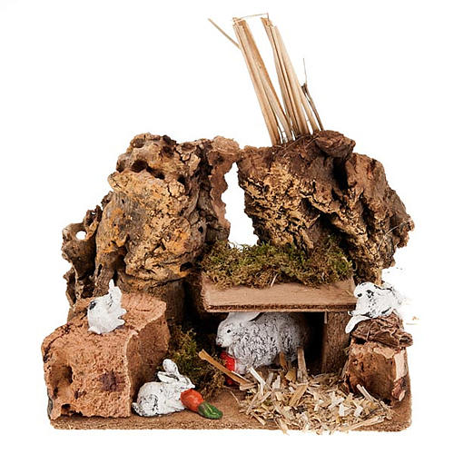 - Króliki w legowisku z małymi otoczenie szopki 8-10 cm