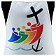 Ten fartuch, wykonany z białego poliestru, jest ozdobiony oficjalnym logo Jubileuszu 2025, któremu towarzyszy motto 'Pielgrzymi Nadziei' wyrażone w kilku językach.