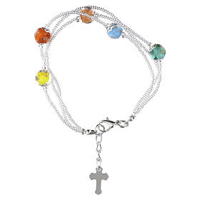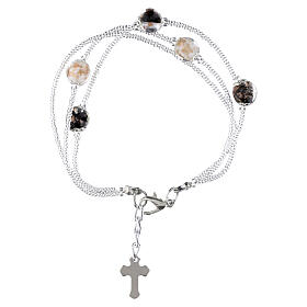 Bransoletka dziesiątka z zapięciem, koraliki szklane plamiste białe 4 mm