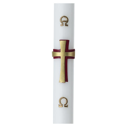 Paschał 120 x 8 cm z białego wosku, z czerwono-złotym krzyżem