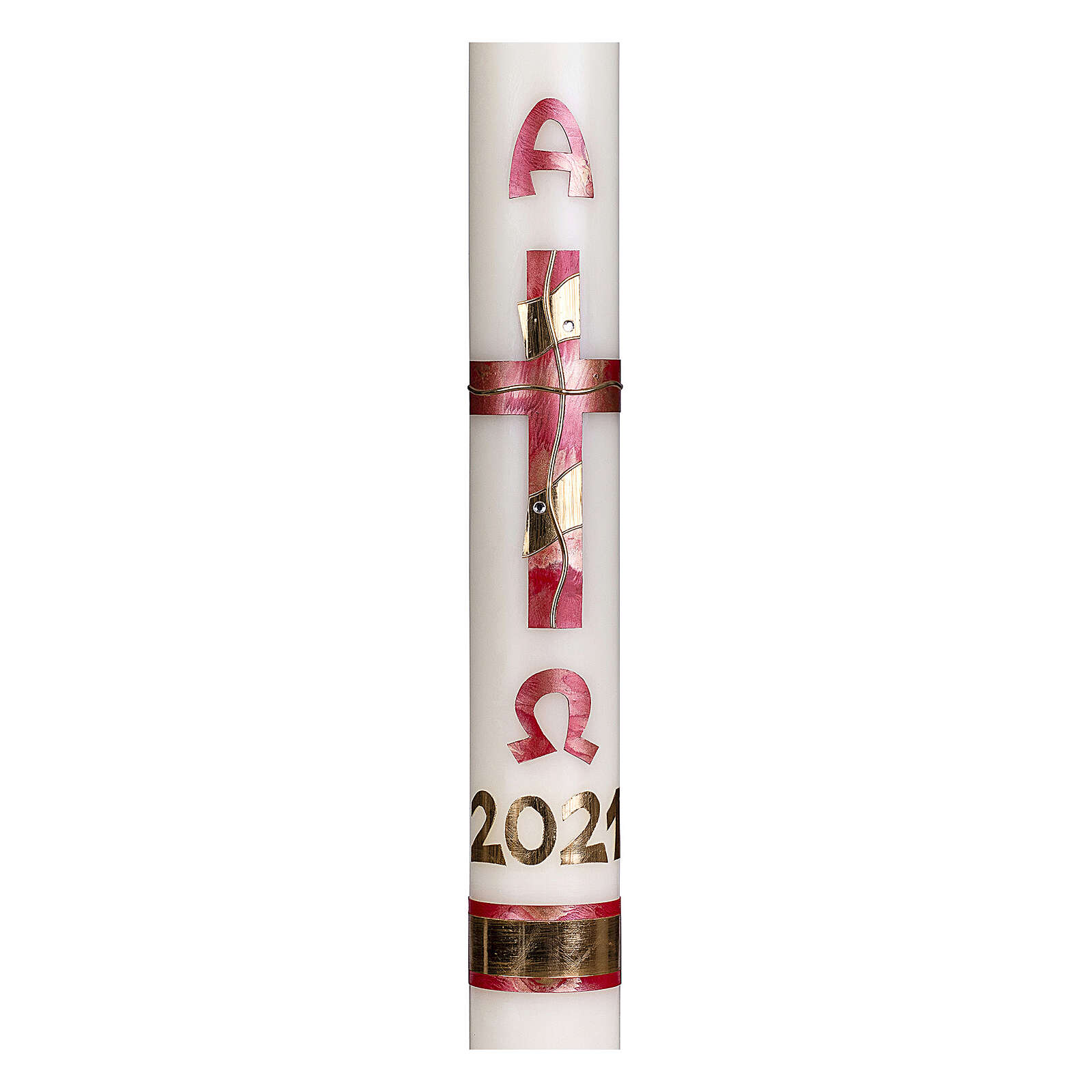 Paschał czerwony złoty Krzyż Alfa Omega 80 cm x 8 cm wosk pszczeli