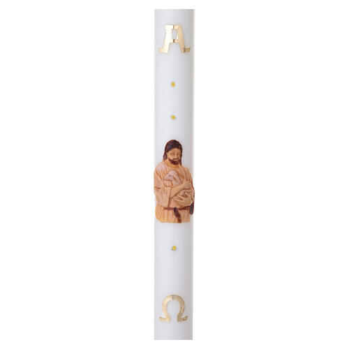 Świeca paschalna biała, Jezus Pasterz, alfa i omega, 8x120cm