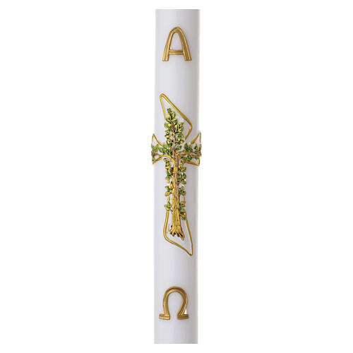 Świeca paschalna biała, krzyż z alfą i omegą, 8x120 cm