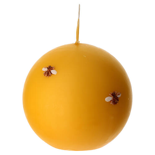 Świeczka kula żółta, ozdobiona ręcznie pszczołami, 10 cm, Cereria Di Giorgio