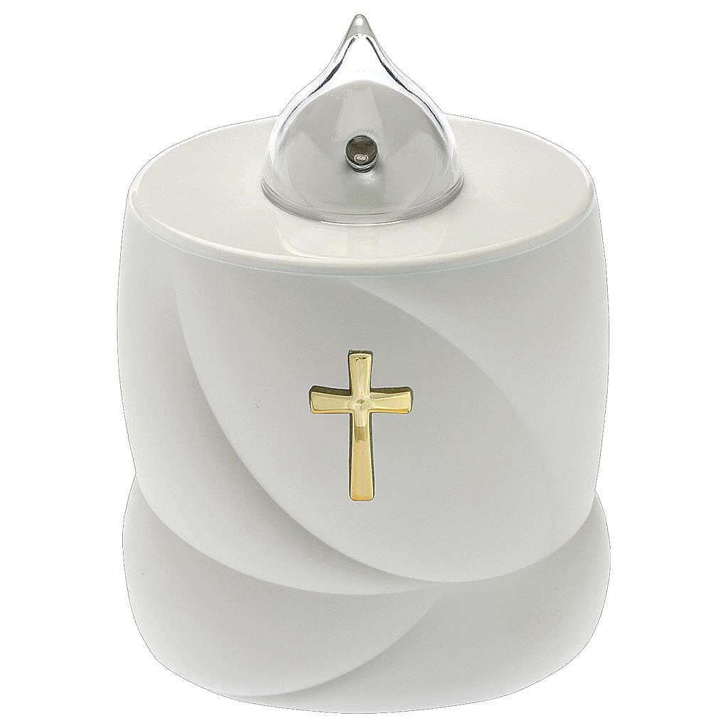 Świeca elektryczna Lumada biała z krzyżem, światło ciągłe czerwone.