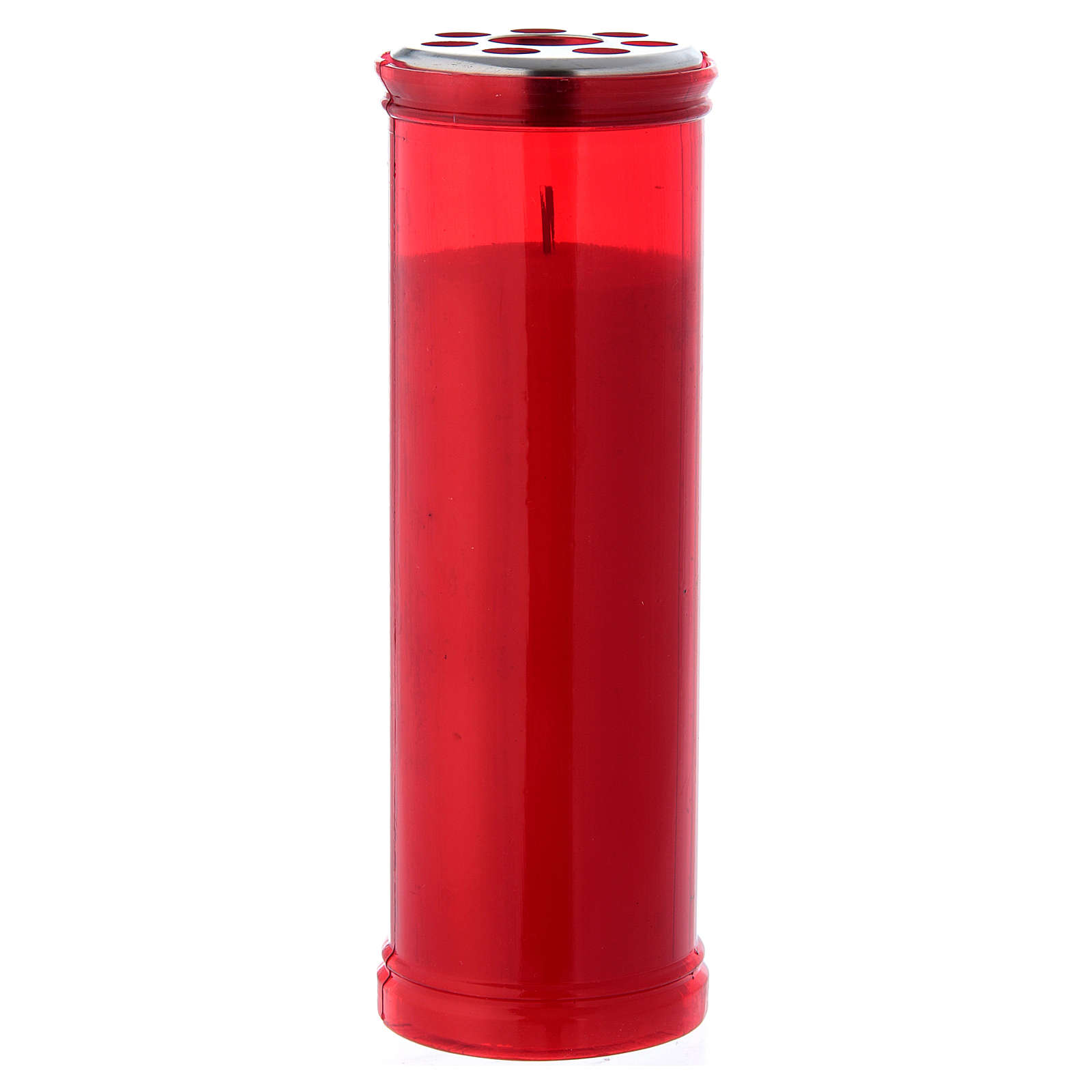 Znicz czerwony 180x62 mm z pokrywką kartką z metalu.