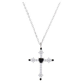 Naszyjnik z krzyżem i czarną cyrkonią, srebro 925 rodowane, Benedictus