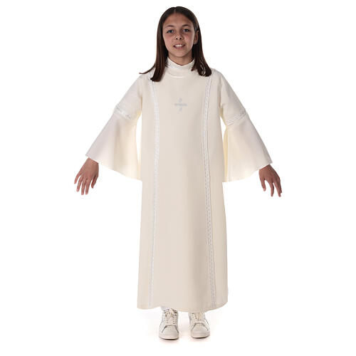 Tunika do Pierwszej Komunii: kość słoniowa, haft biały, dla dziewczynki.