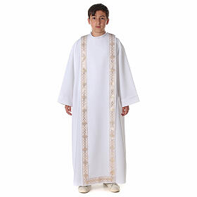 Stroje do Pierwszej Komunii Świętej: sukienki i tuniki. Ten dział poświęcony jest ubraniom zakładanym z okazji przyjęcia Sakramentu Pierwszej Komunii tuniki dla chłopców i sukienki dla dziewczynek. Możesz tu znależć również: tarcisianę dla ministrantów - biała komża z czerwonymi paskami biegnącymi od pleców aż do spodu, oraz krzyżyki, wianki, opaski i cingulum (pasek). Wszystkie stroje zostały realizowane w całości we Włoszech i są dostępne w uniwersalnym rozmiarze dla dziecka, lub też w rozmiarze do personalizacji.