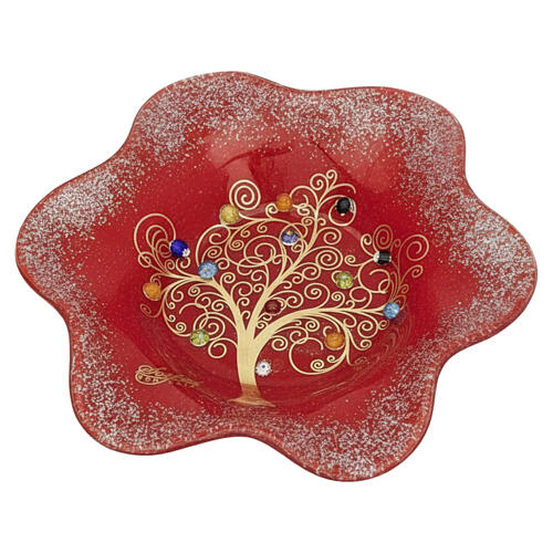 Czerwona miseczka ze szkła Murano, 15x15 cm, Drzewo Życia