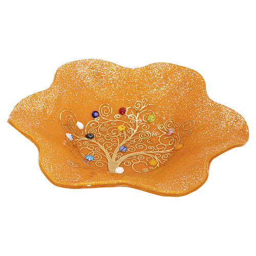 Pomarańczowa misa ze szkła Murano, 13 x 13 x 2 cm z centralnym Drzewem Życia.