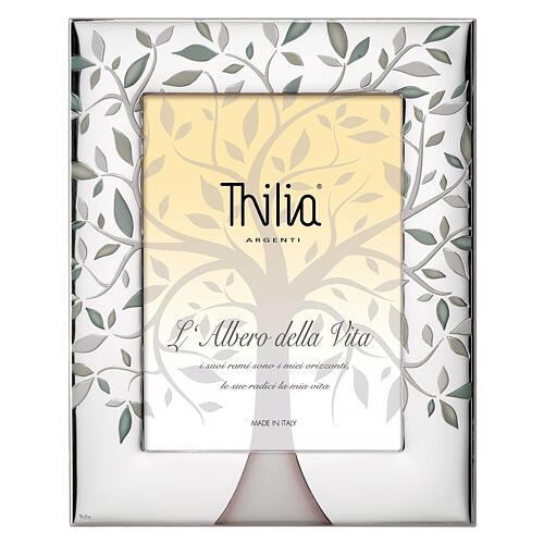 Ramka Thilia z srebrnego aluminium, Drzewo Życia z zielonymi liśćmi, 25x20 cm
