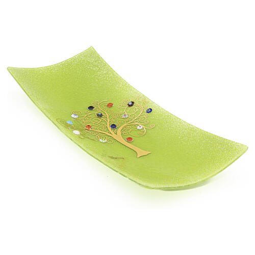 Zielony talerzyk z Drzewem Życia, murriny ze szkła Murano, 5x15x30cm.