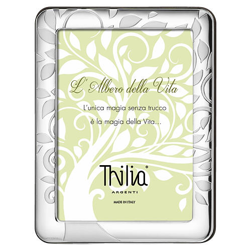 Ramka Thilia 15×10 cm z motywem Drzewa Życia grawerowanym na srebrnym obramowaniu.